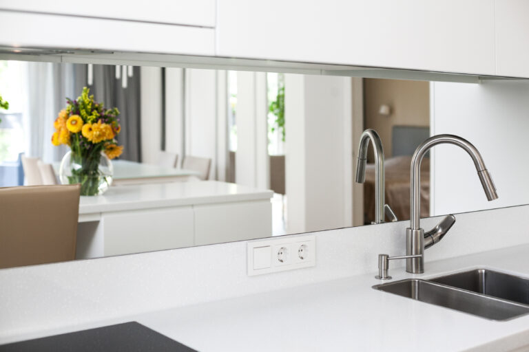The Design features of our Printed Splashback include: Choice of Patterns from Exotic Beaches to City Skyline hand selected by a design and style forecaster. Wide range to select from on-trend colours and metallic options. Each design is printed on a perfectly optioned 3 piece or single piece matched glass type.