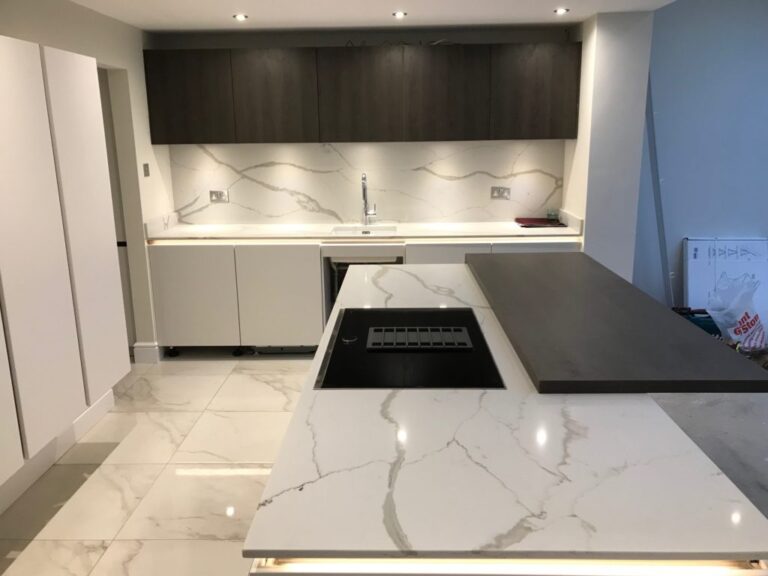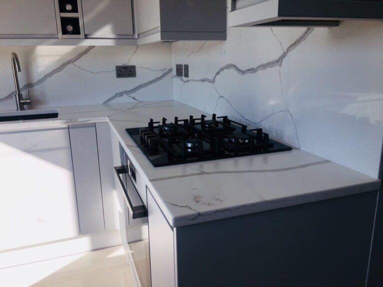 Calacatta Lusso is an elite marble look-alike Quartz stone. It has a white background with scattered grey veins throughout. This beautiful Calacatta Lusso quartz Worktops is ideal to suit modern Kitchens. Quartzstarr can work around helping you to get this beautiful Calacatta Lusso quartz Worktop at an extremely competitive price.