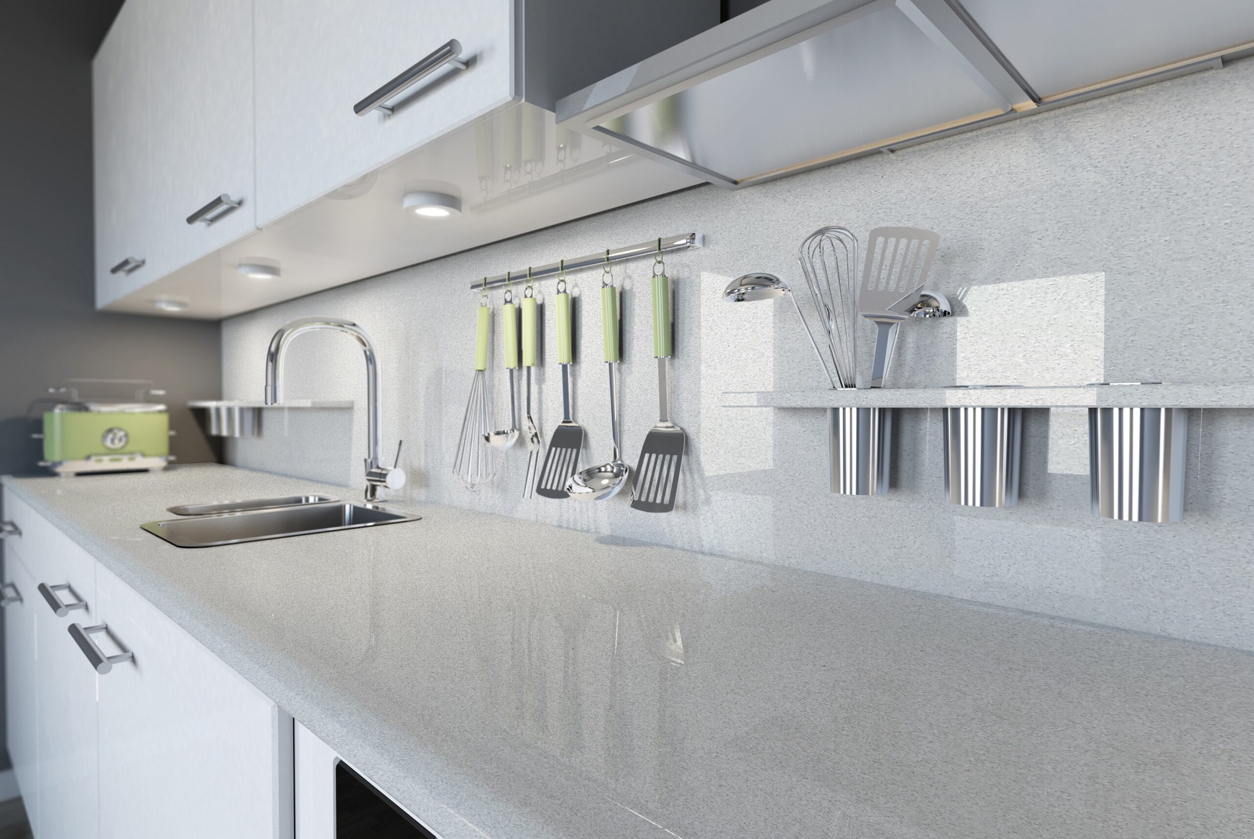 Ice Mix is a very modest and elegant looking quartz. It has a mild shade of grey as a base, with a combination of even darker grey and black flecks, paterened all over the slab. In addition to the above, what makes it more elegant, is a very modest spread of tiny sparkles all over the slab. It can be matched with most modern coloured cabinets in the Kitchen, but offering good contrast mainly with grey coloured glossy and matt door cabinets. Can be widely used in Bathrooms too both in Residential and Commercial industries.