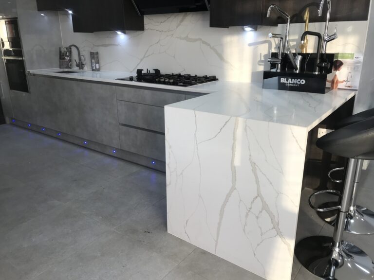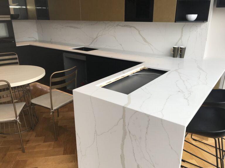 Calacatta Vegle Quartz is made with over 90% quartz crystals forming an excellent kitchen worktop. This beautifully quartz comes in the Bookmatched Series is ideal for within the Residential and Hospitality industry.