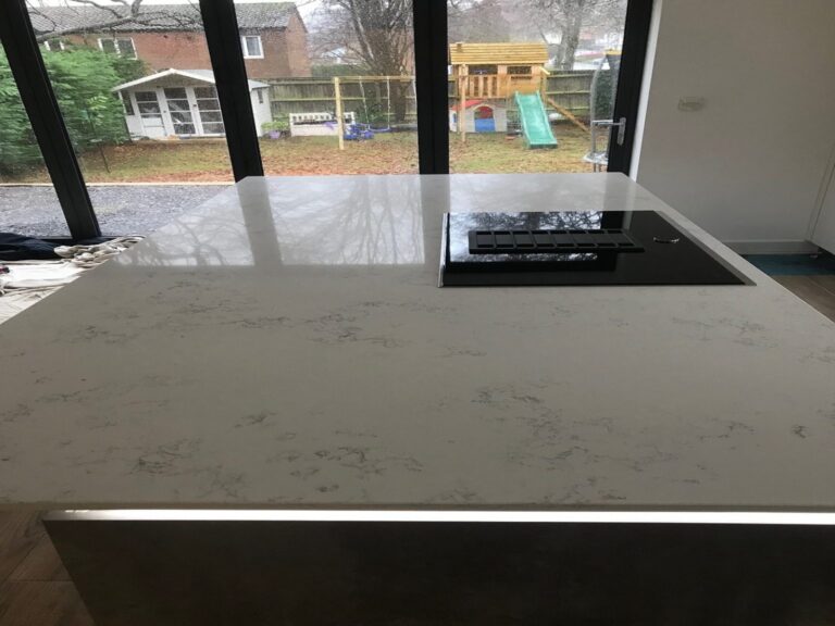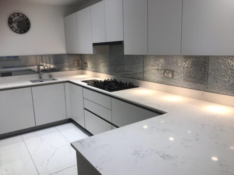 Ibiza Quartz has a white base with light grey Carrara Marble-like veins scattered all over the slab. Although the veins are very gentle and undefined, it can create a slightly busy pattern which can be used as a base colour element to match with the surrounding décor. Ibiza can be matched with most modern coloured cabinets in the Kitchen, but offering good contrast mainly with grey glossy and matt door cabinets. Can be widely used in Bathrooms too both in Residential and Commercial industries.Design or Style. It is Resistant to acids and alkalis. It is Hygienic and Eco-Friendly. It is Scratch resistant to degree and very easy to clean.